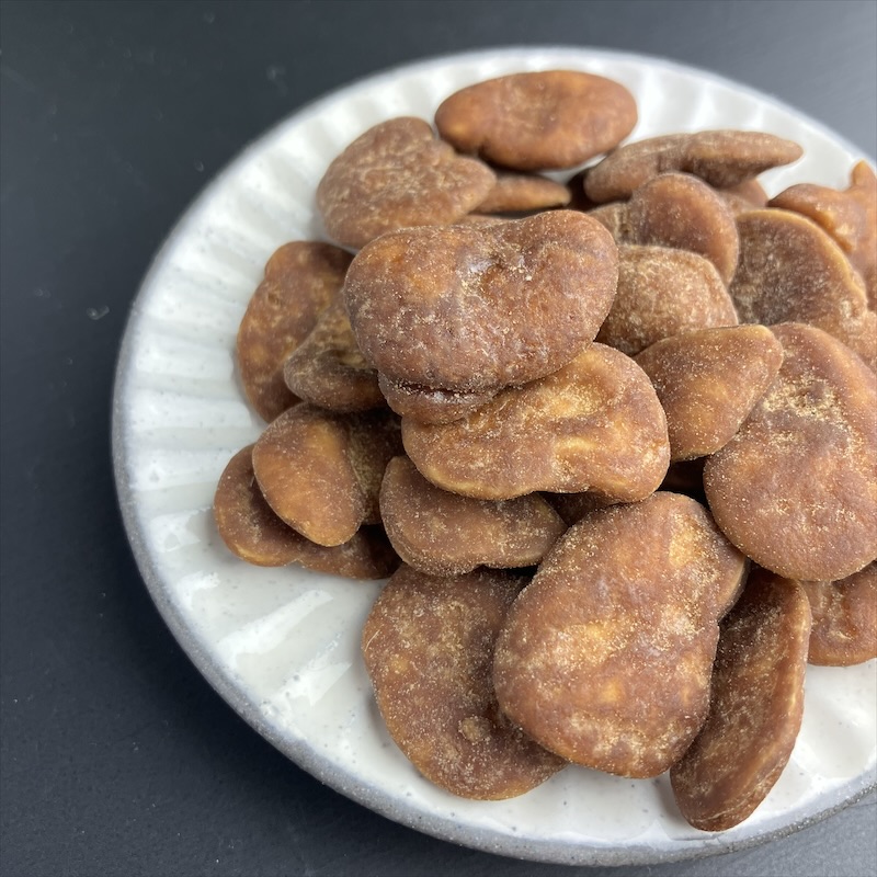 香りが良い黒糖の風味から、一口食べると、そら豆の独特な風味が折り合い重なり中和されて口の中に幸せが広がります。甘めの豆菓子ですが、とてもお酒に合い、銀座のBARでもご好評を頂いております。もちろん、子供のオヤツにも◎