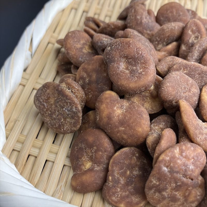 カリッと食感、黒糖の深い味わいに感動しました。鹿児島産の黒糖と蜂蜜を合わせ糖蜜をりんかけしたのが黒糖そら豆です。小さなお子様から、大人の酒のオツマミとして幅広い年代の方に人気を輝かせています。
